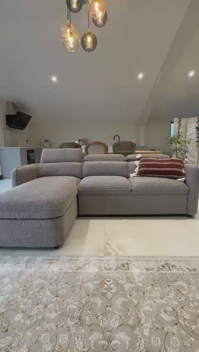 Upgrade your living room with the Capri L-Shape Corner Sofa Bed in Beige, Green, Grey, or Blue, providing versatile multi-functional comfort for contemporary UK homes. This stylish convertible design features premium fabric upholstery across vibrant colour options, deep foam cushions, and a smooth pull-out mechanism that transforms into a spacious double guest bed with integrated storage for bedding.