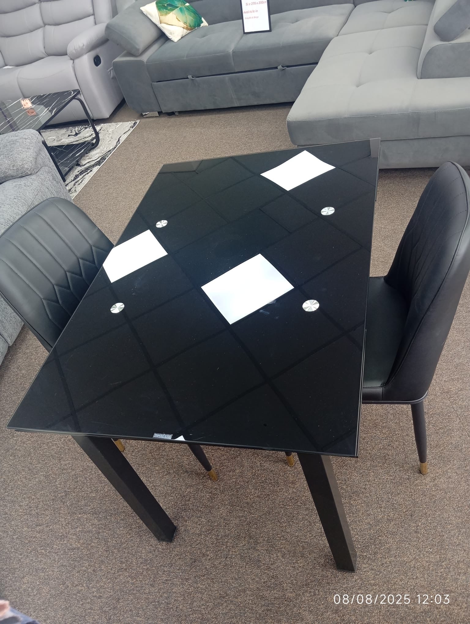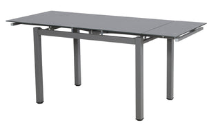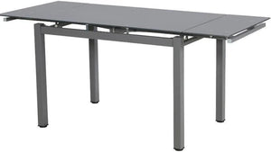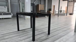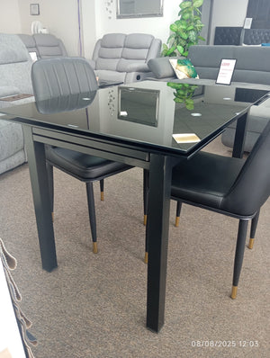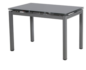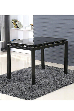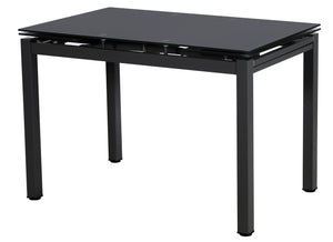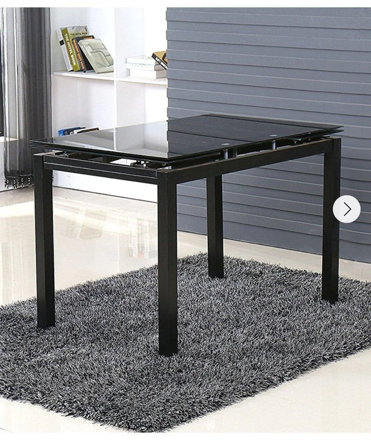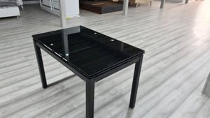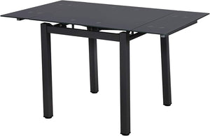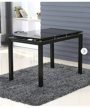 Black or Grey Tempered Glass Top Extending Dining Table with Black Sturdy Legs. Two sizes of the table with both ends extending.  Black or White Tempered Glass Extending Dining Table with Black Metal Frame. Dining table seating capacity of 4 for 80 cm without extension and 130 cm when extended, Table for a seating capacity of 6 sizes of 110 cm extends up to 170 cm, this table extends from both ends. Please go through the two different Table Dimensions as mentioned below. All our item's materials are manufactured and fully comply with current UK standards.