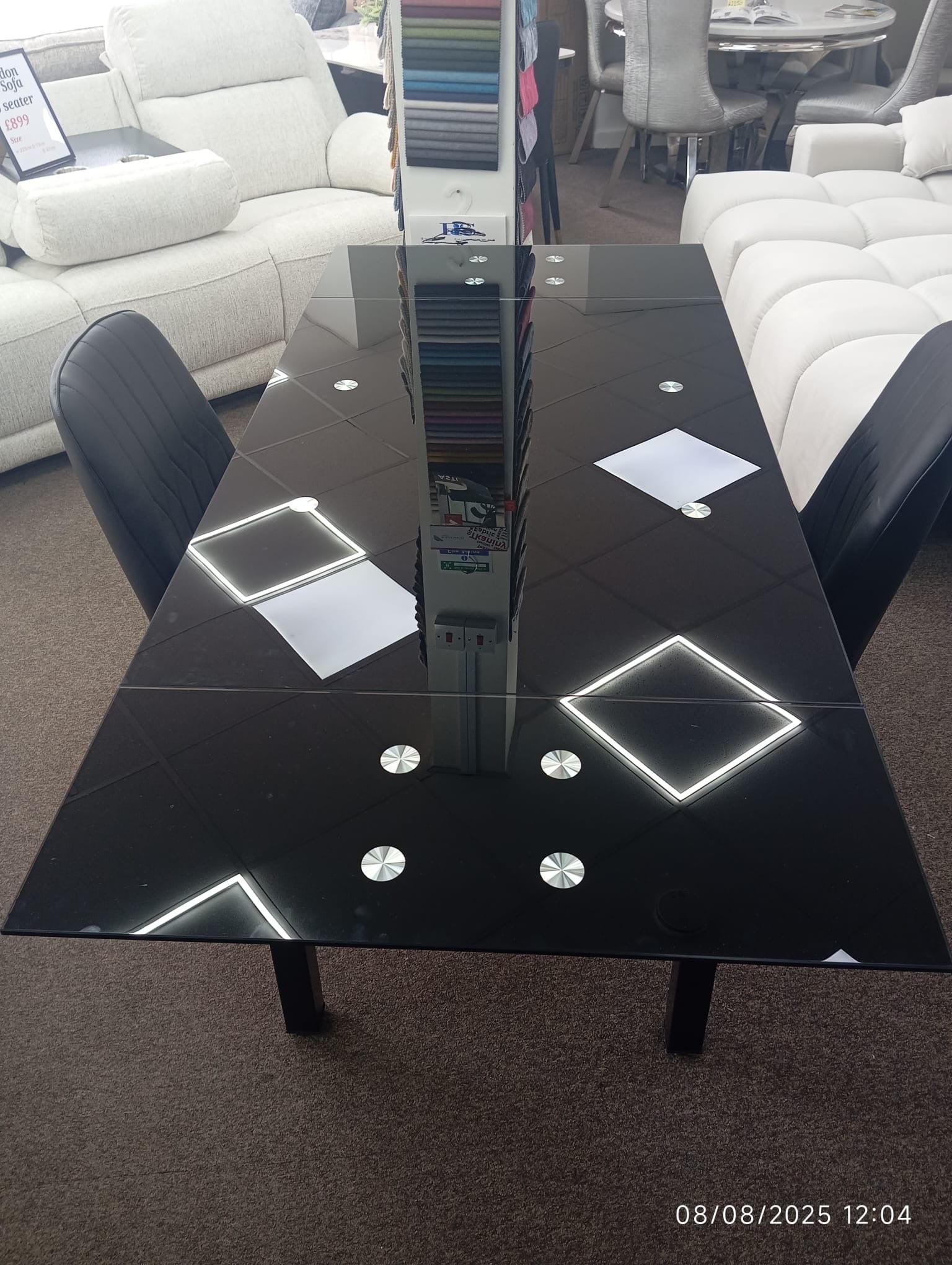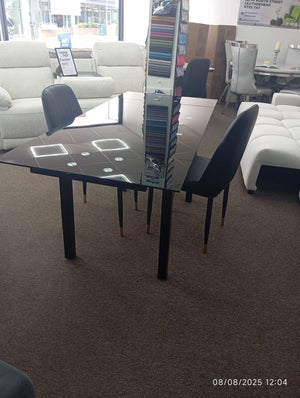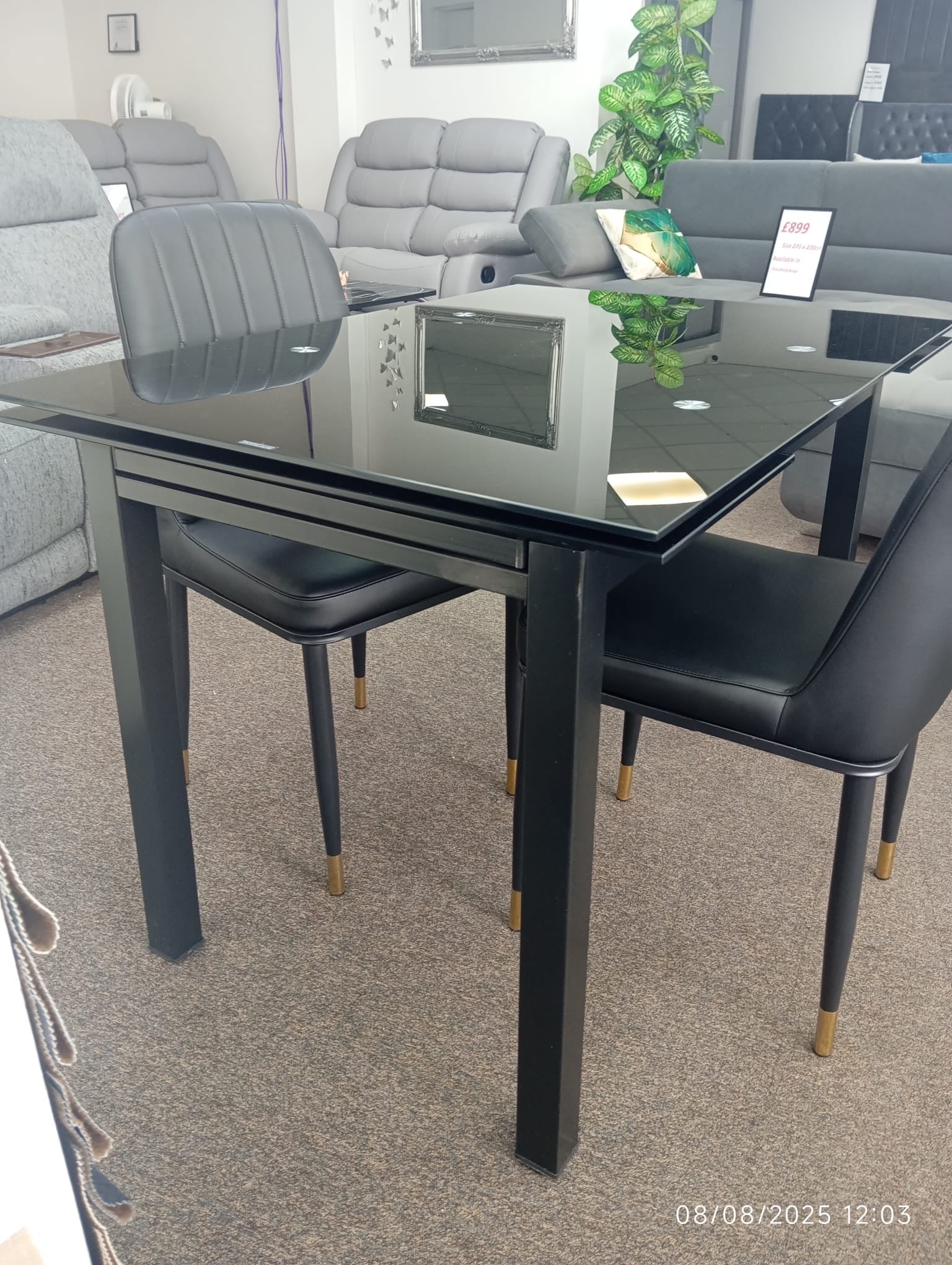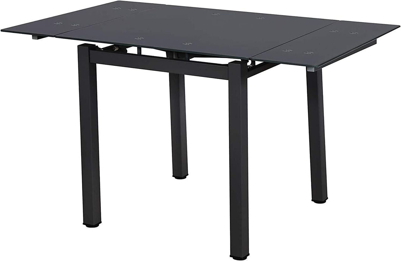 Black or Grey Tempered Glass Top Extending Dining Table with Black Sturdy Legs. Two sizes of the table with both ends extending.  Black or White Tempered Glass Extending Dining Table with Black Metal Frame. Dining table seating capacity of 4 for 80 cm without extension and 130 cm when extended, Table for a seating capacity of 6 sizes of 110 cm extends up to 170 cm, this table extends from both ends. Please go through the two different Table Dimensions as mentioned below. All our item's materials are manufactured and fully comply with current UK standards.