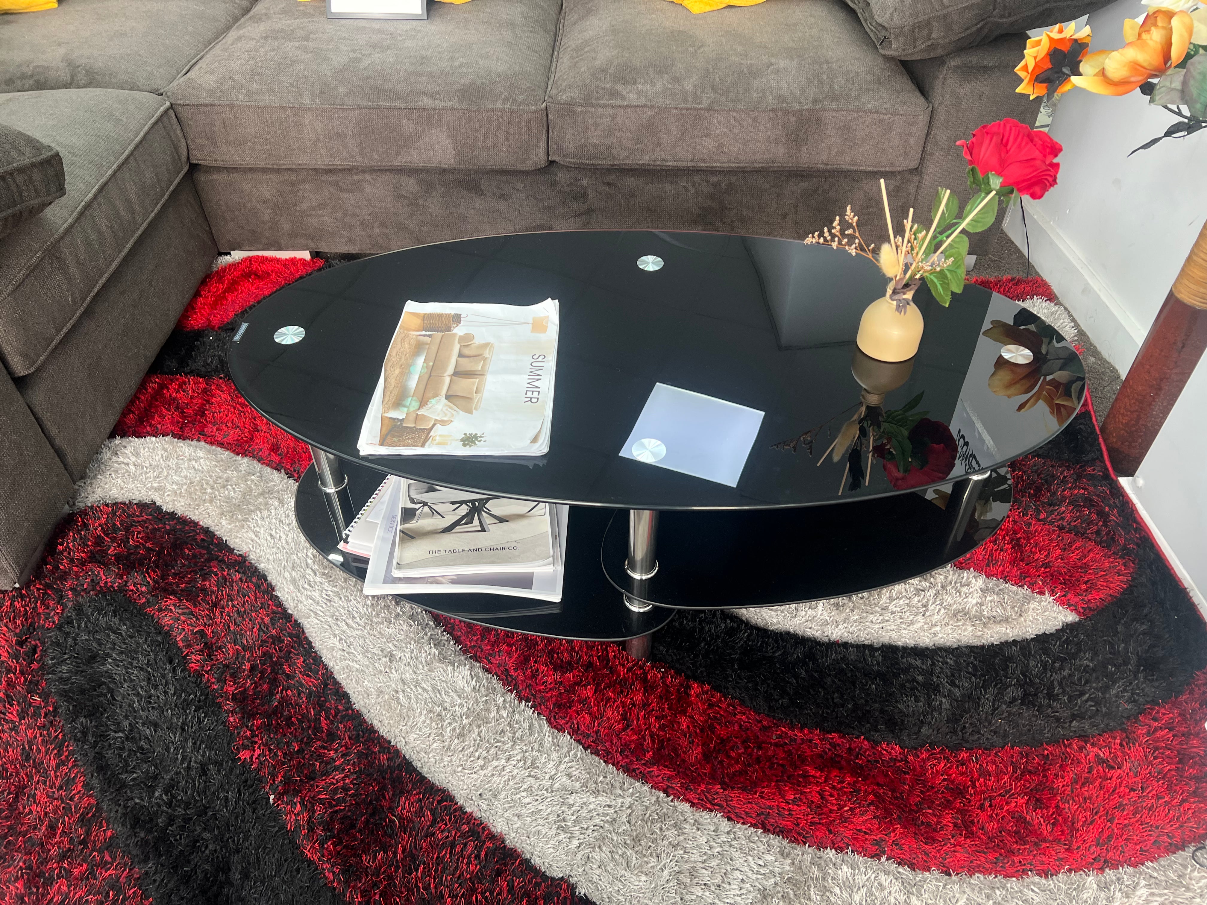 The glass coffee table features a durable design with tempered glass and robust steel legs. The tempered glass enhances safety and durability, reducing the risk of breakage by 40%. The steel legs provide stable support, ensuring longevity and structural integrity, making it an ideal choice for diverse living spaces.