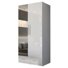 The High Gloss Wardrobe 100cm features a sleek design with two bottom drawers for additional storage. The high gloss finish not only enhances aesthetic appeal but also provides a durable surface that resists scratches and easy cleaning. This wardrobe efficiently maximizes space, making it suitable for various room sizes.