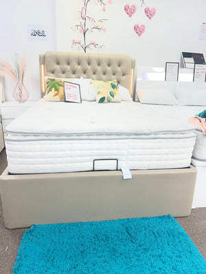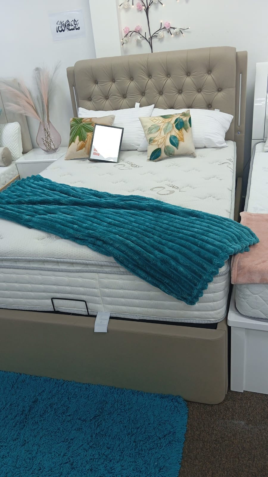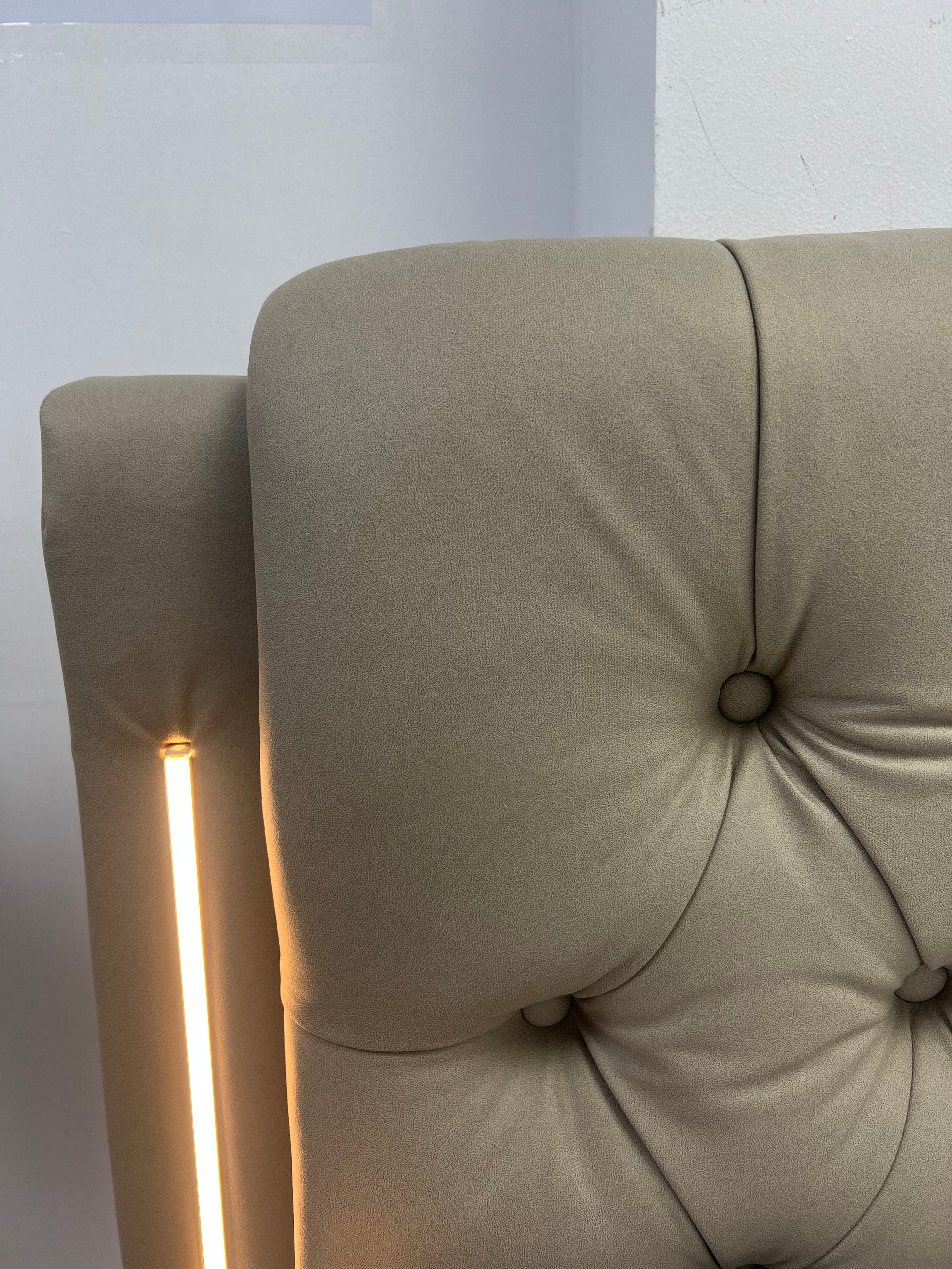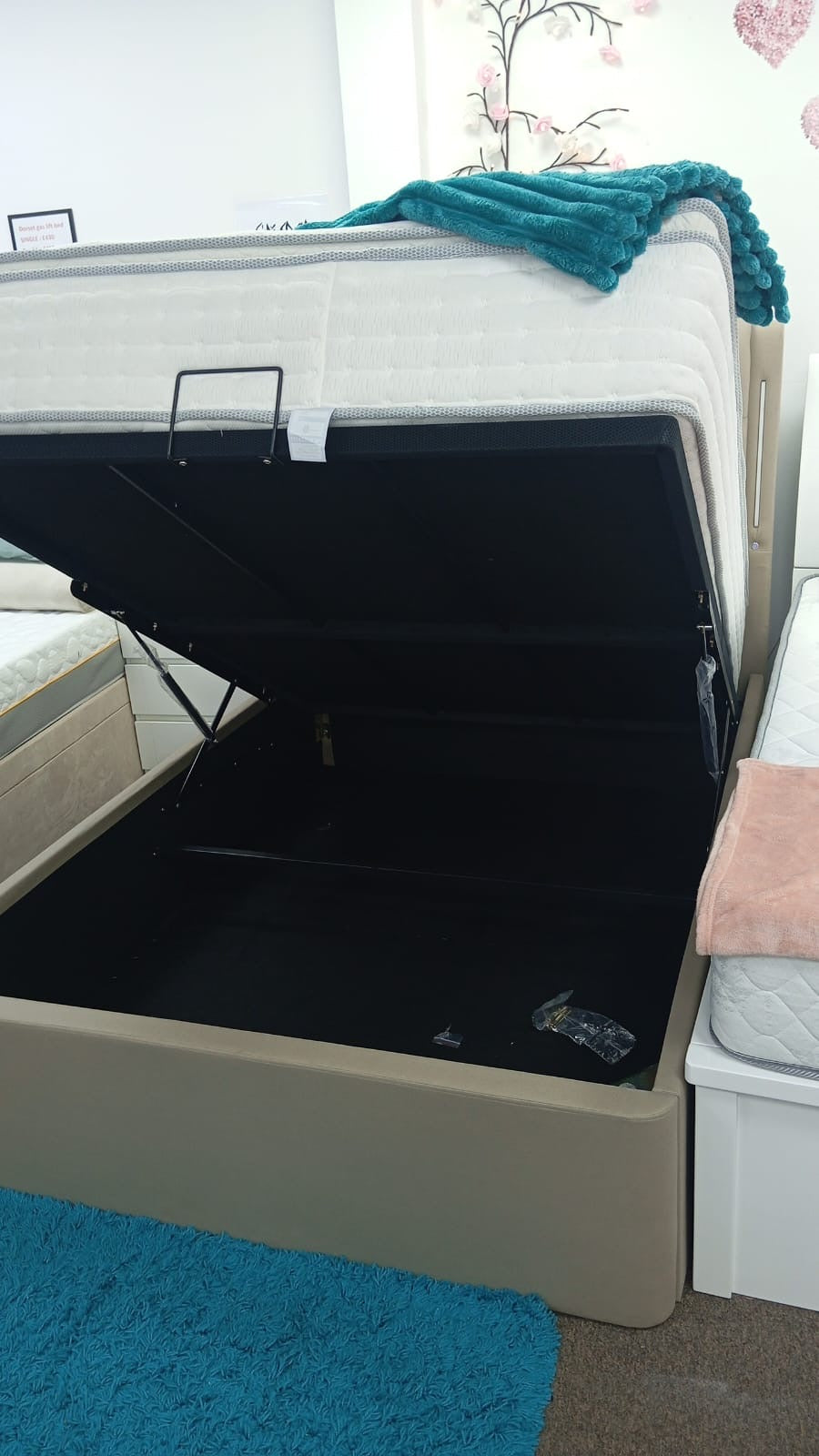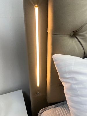 The Suede Fabric Storage Bed features durable cream suede material that is easy to clean, ensuring longevity and maintenance simplicity. Enhanced with integrated LED lighting on the headboard and touch brightness control, this bed combines aesthetic appeal with functional design, providing a modern solution for your bedroom storage needs.