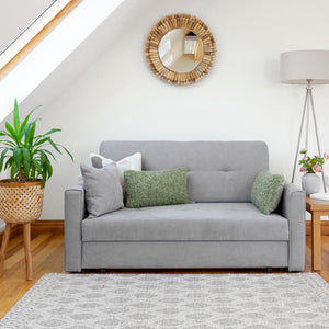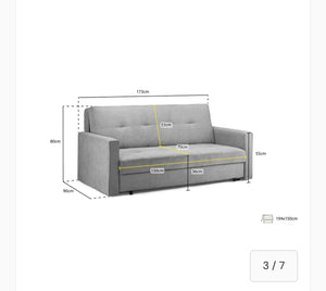 The Viva 3-Seater Sofa Bed provides a comfortable and practical seating solution with a seamless transformation into a bed and discreet space under the seat for storage. Its sturdy wooden frame and foam-filled cushions offer support and durability, making it an ideal choice for modern homes seeking stylish and efficient furniture. Dimensions include: Width - 173 cm, Depth - 93 cm, Back Height - 80 cm, Seat Height - 36 cm, Seat Depth - 53 cm. Additional product features include attached seat and back cushions, full back support, easy conversion into a bed, and a solid wood construction.